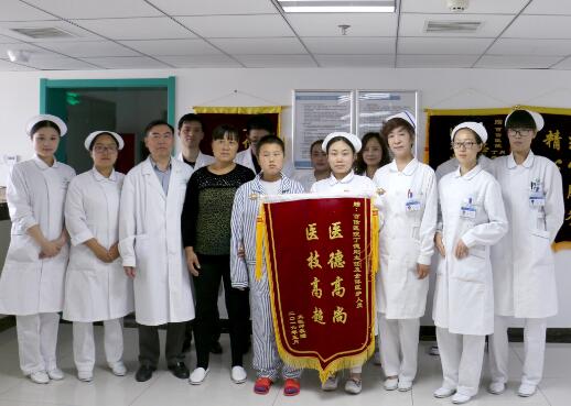 患者进入术后护理阶段,儿童虽然发病快,但同时具有恢复好的特点,所以在住院部医护人员精心的护理下孩子的身体逐步的得以康复,身体各项指标很快达到正常水平,孩子已经活动自如,饮食正常,纯真可爱的脸庞上又绽放出了灿烂的笑容。患者家属为了表达心中无尽的感激之情特别定制了锦旗赠送给丁德刚主任及百信医院全体医护人员。